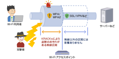 2017-10-20 WPA2の脆弱性「KRACKs」対策 Network Router Security ・WPA2の脆弱性「KRACKs」、Wi-Fi電波出力を最小限にすることも推奨、全機器への対策は時間を要する可能性 -INTERNET Watchより 電波の到達範囲を最小限に。